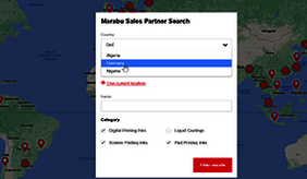 We are pleased to offer more comfort in your search for the right sales partner. The new designed "Marabu Sales Partner Search" is intuitive to use. You can filter by country or postcode. If you already know your distributor, but you are missing the phone number or address, you can also search directly for the company name of your contact person. Together with our worldwide sales partners, we are pleased that you will be able to contact us quickly and easily in the future, you will find the right contact person and you will receive the required information for all our products and services.